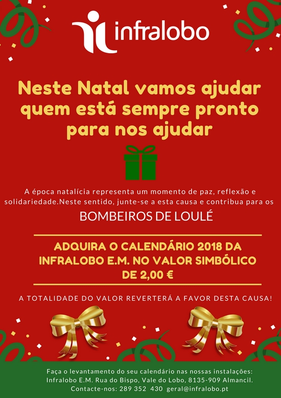 Reconhecendo a enorme importância e coragem dos bombeiros nacionais no combate a incêndios florestais, que este ano registaram um número assustador, a empresa criou calendários para o ano de 2018 com valor simbólico de 2,00€ a reverter na totalidade para esta causa. O calendário conta a história da Infralobo E.M. e está ilustrado com paisagens da sua área de intervenção.