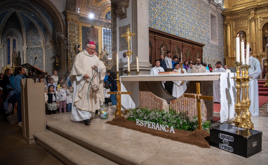 Na Eucaristia, em que se celebrou a solenidade litúrgica de Cristo-Rei, o bispo diocesano contou ainda que o que escreveu para ser colocado na “cápsula do tempo” sintetizou a sua homilia ao referir que “a realeza de Cristo se consuma na doação plena de si mesmo na cruz e se eterniza como dom total e serviço de amor na Eucaristia”. “Jesus está na Eucaristia silenciosamente sem se impor, mas de uma maneira muito eficaz porque transforma aqueles que o acolhem, que acreditam verdadeiramente na sua presença, que se alimentam da Eucaristia e que procuram viver na sua vida esta lição também de amor e serviço que nos dá”, completou D. Manuel Quintas.