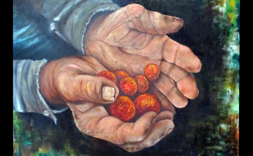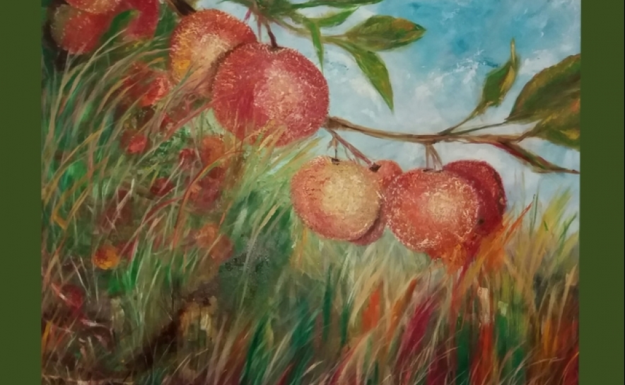 “Lá pela Serra” é uma homenagem de Guida Vaz à “Serrania Algarvia”, através do medronheiro e dos seus frutos vermelhos/dourados, essa riqueza serrana que há-de transformar-se e fazer vibrar o palato dos apreciadores, em contemplação gustativa, num cálice de aguardente, tal como é apanágio dum Verdadeiro Néctar!