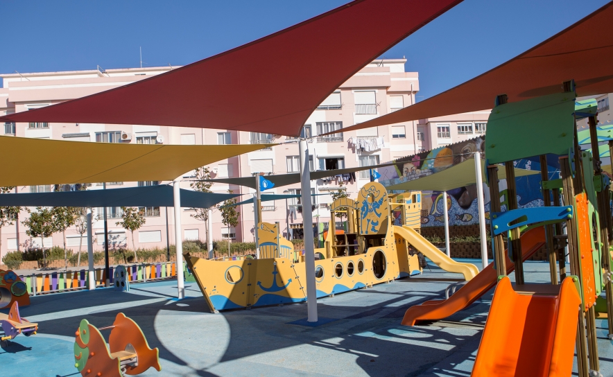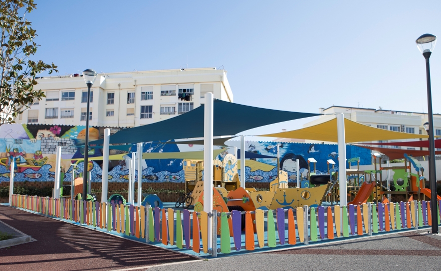 No parque de jogos e recreio do Parchal, foi efetuada a instalação de toldos para criação de zonas de sombra na área do Parque Infantil. Para o efeito, foi adotado um sistema de várias telas tencionadas de forma a limitar o impacto visual que não permitisse ter como fundo o espaço o mural pintado.