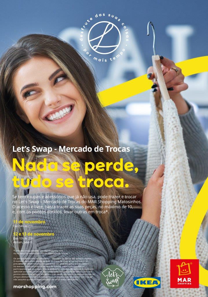 No Let’s Swap – Mercado de Trocas, no MAR Shopping Matosinhos, será possível trocar aquele outfit completo que estava parado no guarda-roupa por outros, a partir de um sistema de pontos, sem envolvimento de dinheiro. O espaço será montado no Atrium, piso 0, nos dias 11 (das 14h00 às 23h00), 12 e 13 (10h00 às 23h00) de novembro. O objetivo desta e todas as ações é descentrar a conversa dos preços baixos para um mindset de repensar o consumo de forma sustentável. A proposta é reparar, reutilizar ou adaptar.