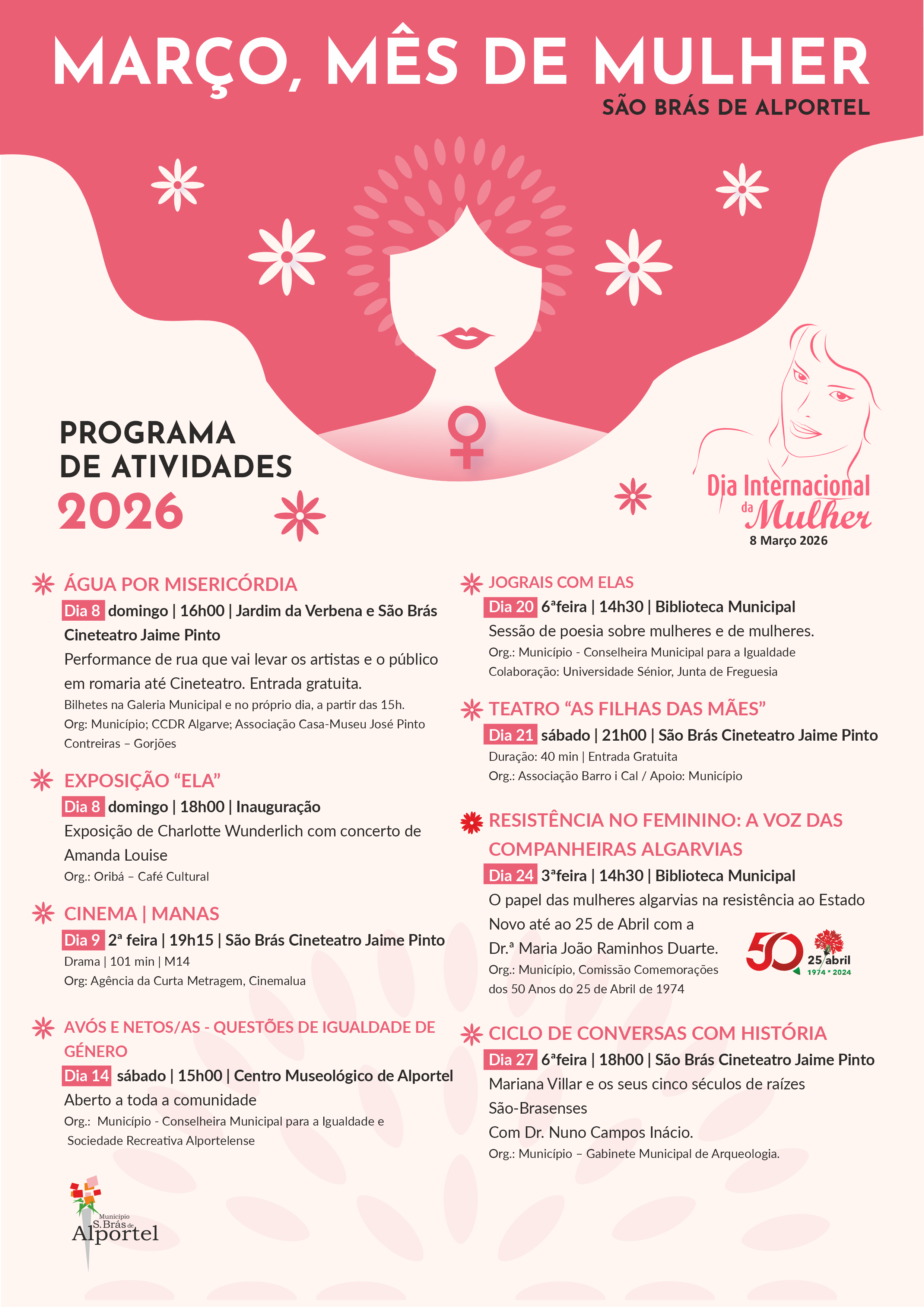 Com esta iniciativa, São Brás de Alportel convida toda a comunidade a participar num mês de celebração, reflexão e valorização das mulheres, reforçando a importância da igualdade, da memória e da participação cultural no concelho.