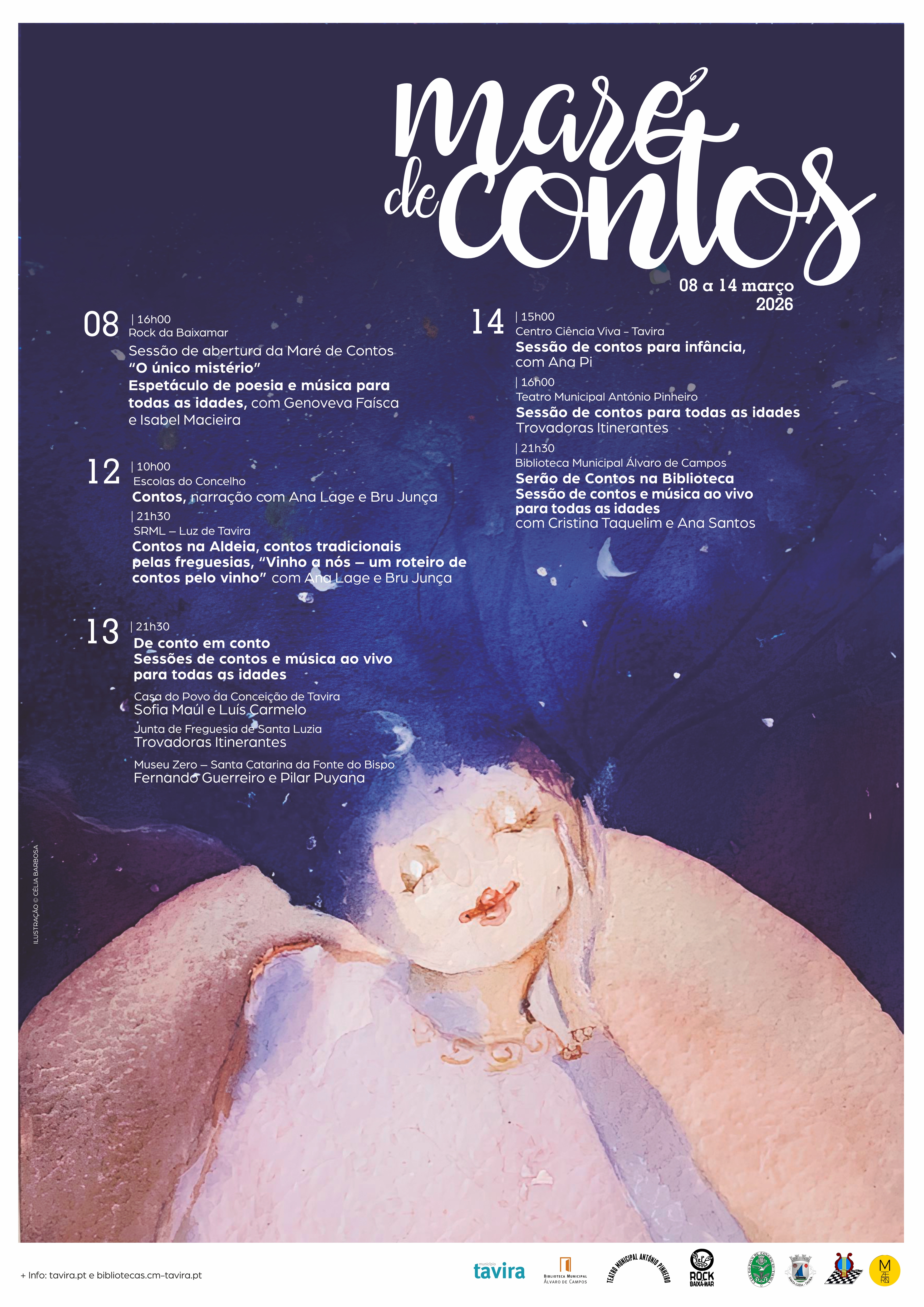 Esta iniciativa, promovida pelo Município de Tavira em parceria com a Associação Rock da Baixamar, é considerado um ponto de encontro para os amantes da palavra dita, da tradição oral e da imaginação. A Maré percorre vários espaços do concelho, garantindo que todos, independentemente da idade ou localização, podem usufruir e participar desta celebração da narrativa oral.