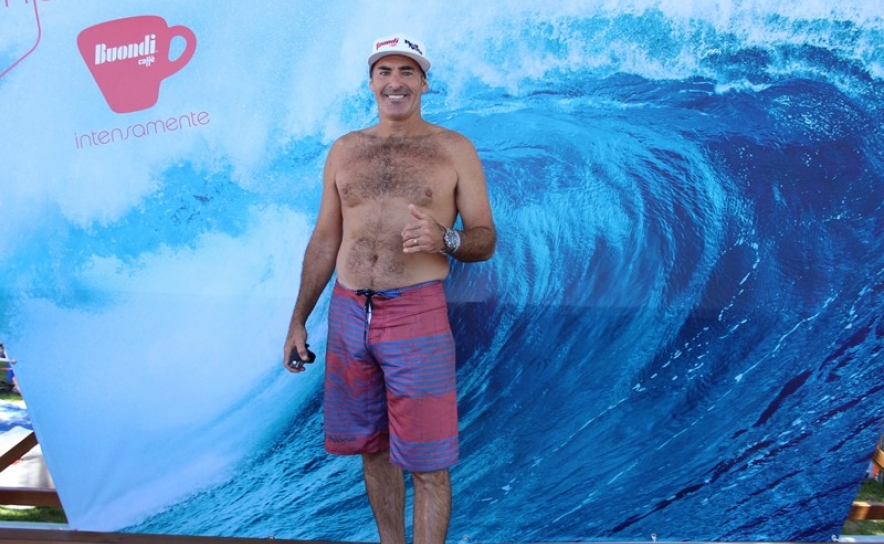 Ao seu lado esteve o vencedor do concurso “Expresse Intensamente” proporcionado pelo Aquashow Park Hotel, em parceria com a Buondi, que ofereceu ao vencedor 4 entradas para o parque Aquático e a oportunidade de descer o escorrega com o surfista.