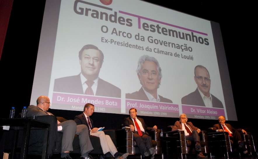 O Cine-Teatro assistiu no passado sábado à noite a mais um momento alto das comemorações dos 40 anos do 25 de Abril no Concelho de Loulé. Sob o mote “O Arco da Governação”, três antigos autarcas louletanos eleitos por sufrágio direto – José Mendes Bota, Joaquim Vairinhos e Vítor Aleixo – deram o seu “Grande Testemunho” sobre o período em que exerceram as funções de presidentes de Câmara, o atual momento das autarquias e o futuro do poder local.