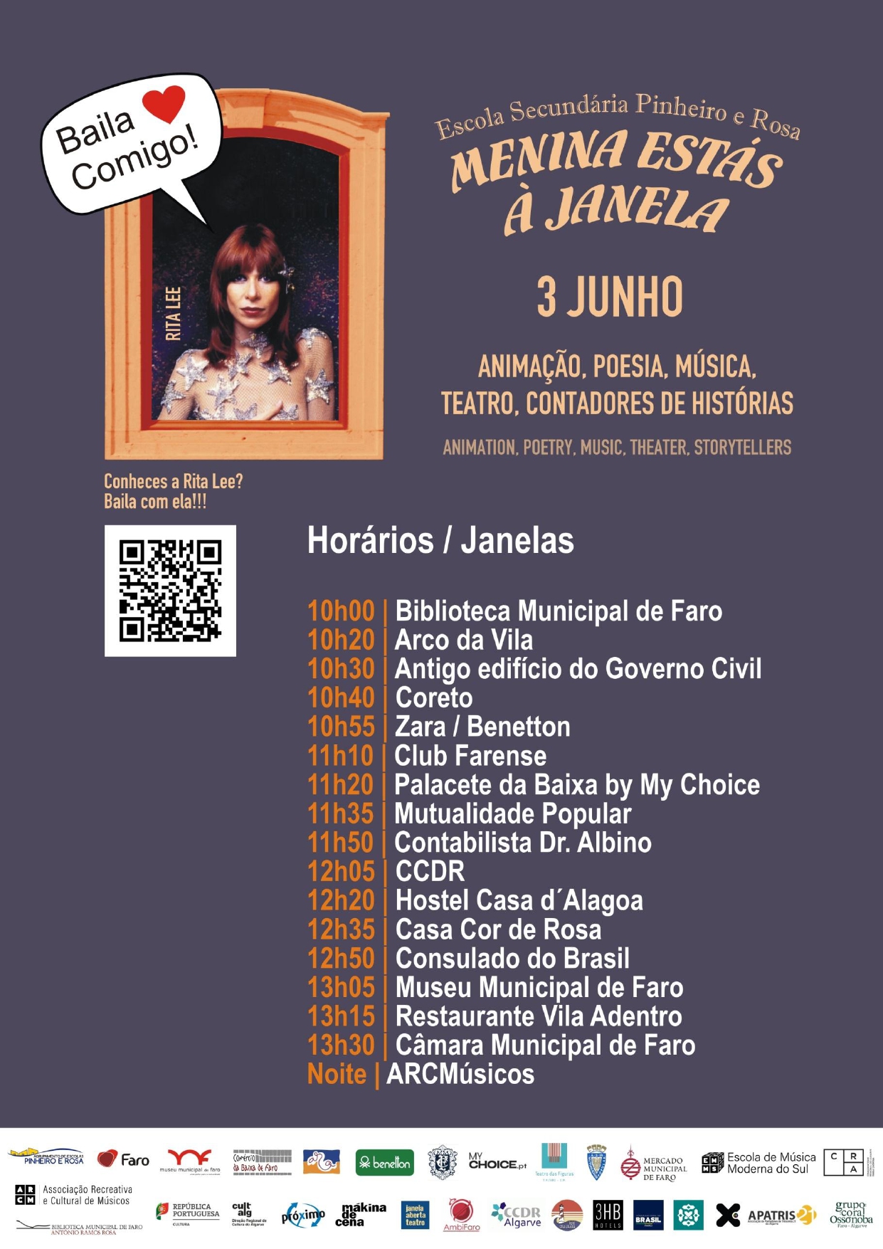Organizado pelo Curso Profissional de Organização de Eventos da Escola Secundária Pinheiro e Rosa, este ano em conjunto com a Associação Recreativa e Cultural de Músicos, em Faro, esta iniciativa consiste num percurso pedonal ao longo do do qual as janelas e varandas de vários edifícios de reconhecido valor arquitetónico e histórico da capital algarvia, servem de palco a diversos artistas das mais variadas áreas das artes e do espetáculo, como podemos recordar aqui