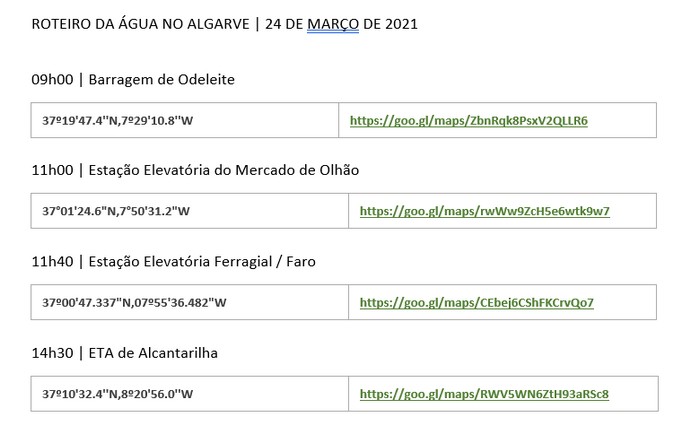 Do roteiro fazem ainda parte a inauguração de duas estações elevatórias de águas residuais, em Olhão e em Faro, infraestruturas integradas no Sistema Multimunicipal de Saneamento do Algarve, designadamente nos subsistemas que afluem à nova ETAR de Faro-Olhão.