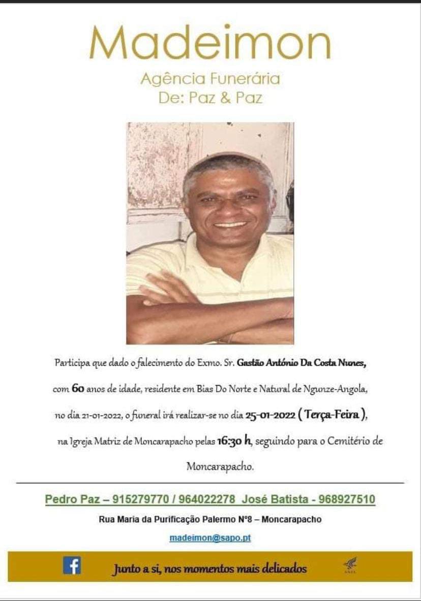 UNIÃO DE FREGUESIAS DE MONCARAPACHO E FUSETA EMITE NOTA DE PESAR PELO FALECIMENTO DE GASTÃO COSTA NUNES
