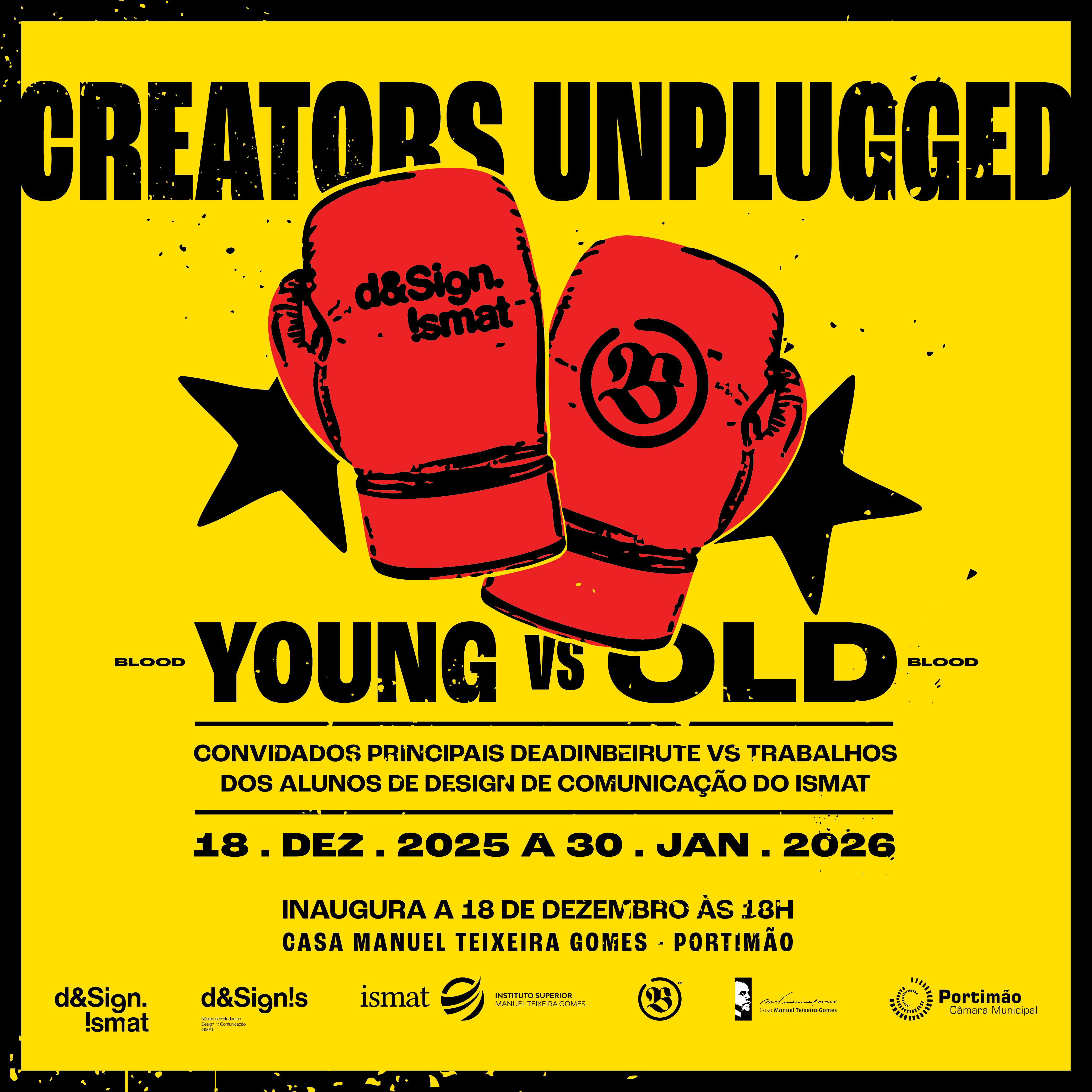 A mostra “Creators Unplugged: Young vs Old Blood” é uma organização do ISMAT, em parceria com a Deadinbeirute, contando com o apoio da Câmara Municipal de Portimão, através da Casa Manuel Teixeira Gomes.