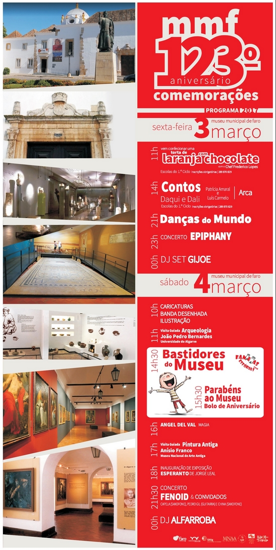 As celebrações terão início dia 3 de março, com sessões de contos “Daqui e dali” que nos levam a uma viagem de mão dada com as palavras por terras e paisagens daqui, dali, de hoje, de ontem e de sempre. Estes contos serão dinamizados pela ARCA, cujos destinatários são as escolas do 1.º ciclo do concelho. Também neste dia, os amantes da doçaria poderão assistir a um Showcooking dinamizado pelo Chef Frederico Lopes, da Tertúlia Algarvia, que irá confecionar uma torta de laranja com chocolate. A noite será animada com o espetáculo “Danças do Mundo”, seguido do concerto com “Epiphany” e por último, a atuação do DJ Set Gijoe.