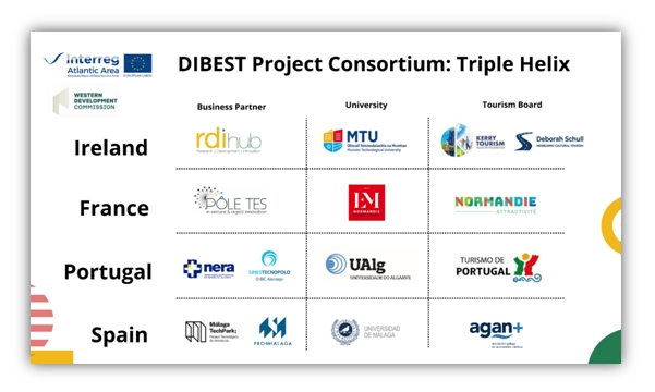 Importa destacar que a parceria deste projeto inclui uma tripla hélice: investigação, turismo e componente empresarial, abrangendo um total de dezasseis parceiros de Portugal, Espanha, França e Irlanda. Na parte lusa, para além do NERA – Associação Empresarial dos Empresários da Região do Algarve, integra ainda a parceria deste projeto a Universidade do Algarve - CRIA, o Sines Tecnopolo e o Turismo do Algarve [quadro de parceria abaixo].