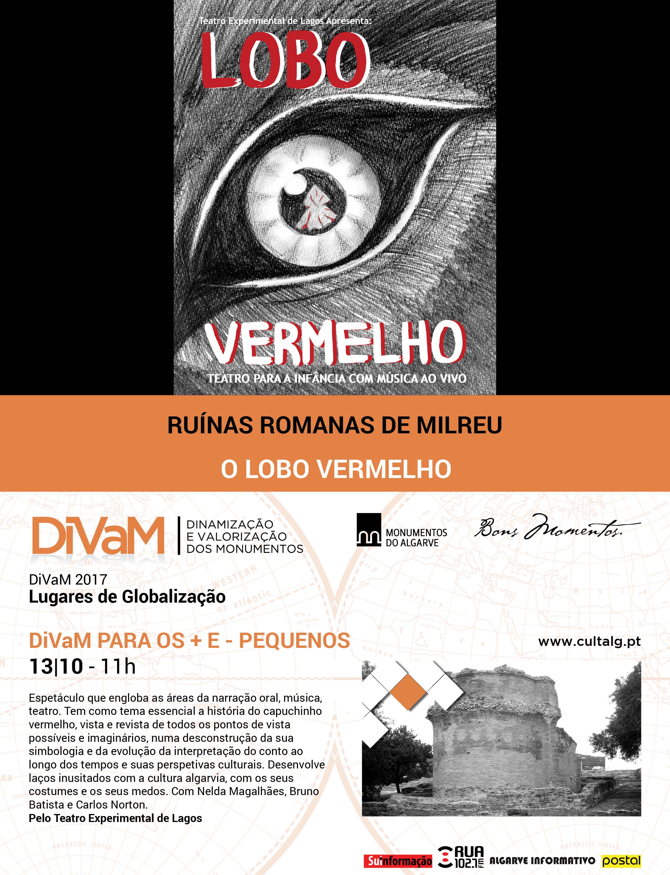 O Lobo Vermelho é um projeto do Teatro Experimental de Lagos, com Nelda Magalhães, Bruno Batista e Carlos Norton. Esta apresentação integra o programaDiVaM – Dinamização e Valorização dos Monumentos 2017, programa organizado pela Direção Regional de Cultura do Algarve.