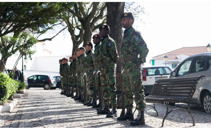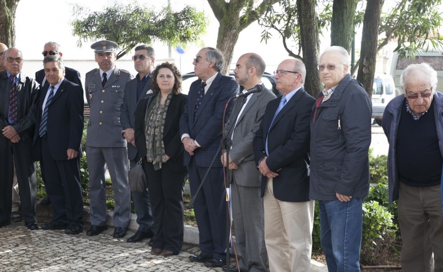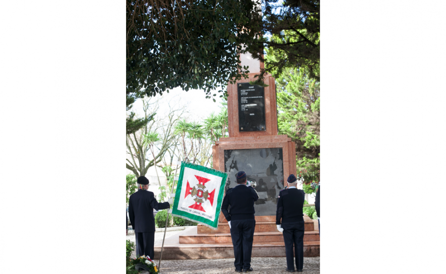 ... junto ao Monumento erigido no Largo dos Combatentes, frente à Igreja Matriz e que contou com a presença do Presidente da Assembleia Municipal, Águas da Cruz, dos Vereadores Luís da Encarnação e Anabela Simão, em representação do executivo municipal, do Presidente da União das Freguesias de Lagoa e Carvoeiro, Joaquim João, assim como de Associações de Antigos Combatentes dos vários ramos das Forças Armadas, de uma delegação dos Bombeiros Voluntários de Lagoa e de uma secção do Regimento de Infantaria n.º 1 de Tavira, comandada pelo Capitão Brito e população.