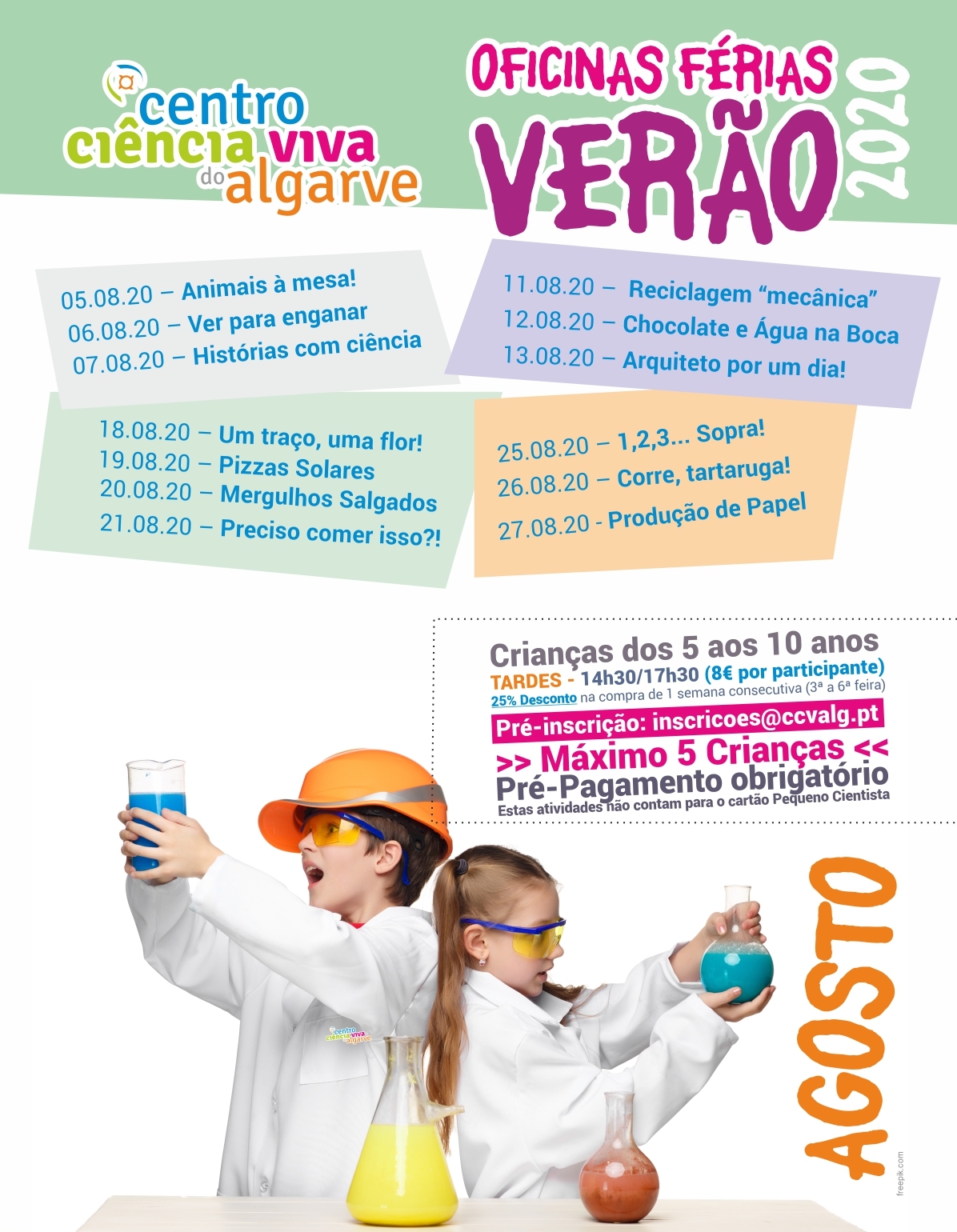 desenhado pelo IPDJ - Instituto Português do Desporto e Juventude, baseado nas orientações da DGS na Prevenção e Controlo em Centros de Atividades de Tempos Livres, o Centro Ciência Viva do Algarve retoma as suas Oficinas de Férias mediante o seguinte conjunto de regras e condições: