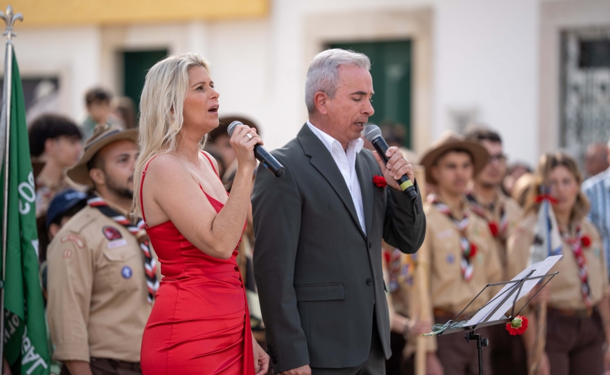 As comemorações tiveram início com a tradicional cerimónia do hastear das bandeiras, nos Paços do Concelho, num momento marcado pelo simbolismo e pela união entre autarcas, entidades e população. A cerimónia contou com a participação de Pedro e Teresa Viola, que interpretaram o Hino Nacional e “Grândola, Vila Morena”, acompanhados pela Banda Filarmónica 1º de Dezembro de Moncarapacho, evocando de forma emotiva o espírito de Abril.