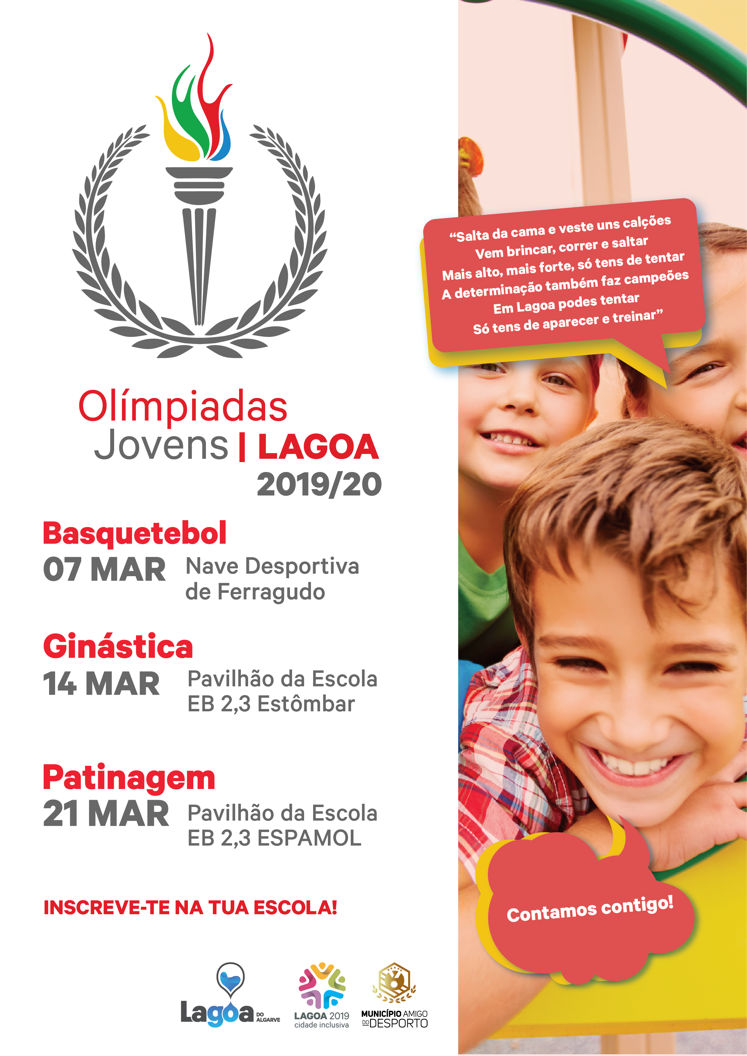 As Olimpíadas Jovens realizam-se aos sábados, correspondendo cada dia a uma modalidade desportiva diferente. O entusiasmo e a participação nas Olimpíadas está a crescer entre as crianças do 1º ciclo das escolas do concelho de Lagoa, a quem se dirige este projeto. Todas crianças do 1º CEB foram convidadas a participar neste projeto.