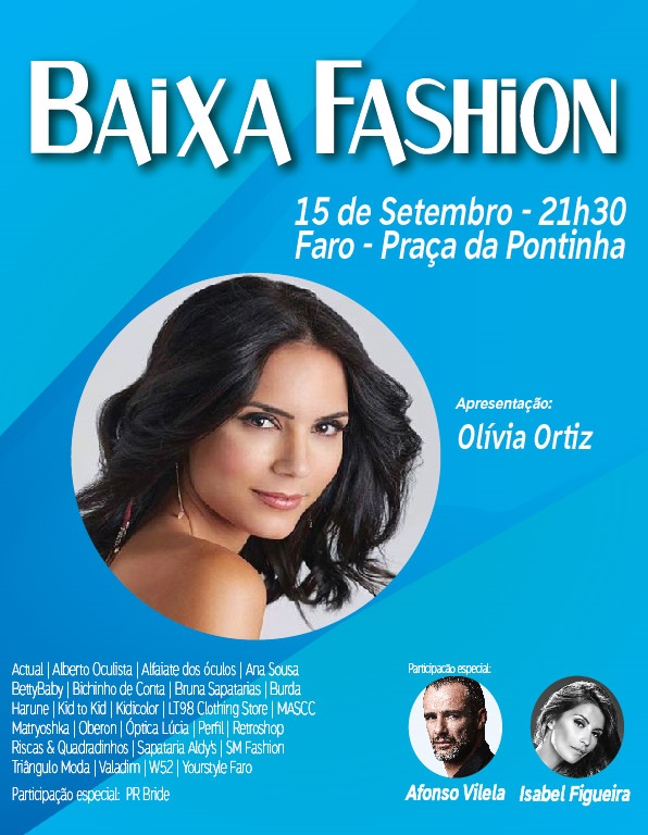Actual, Alberto Oculista, Alfaiate dos Óculos, Ana Sousa, BettyBaby, Bichinho de Conta, Bruna Sapatarias, Burda, Harune, Kid to Kid, Kidicolor, LT98 Clothing Store, MASCC, Matryoshka, Oberon, Óptica Lúcia, Perfil, Retroshop, Riscas & Quadradinhos, Sapataria Aldy’s, SM Fashion, Triângulo Moda, Valadim, W52, Yourstyle Faro e participação especial da PR Bride.