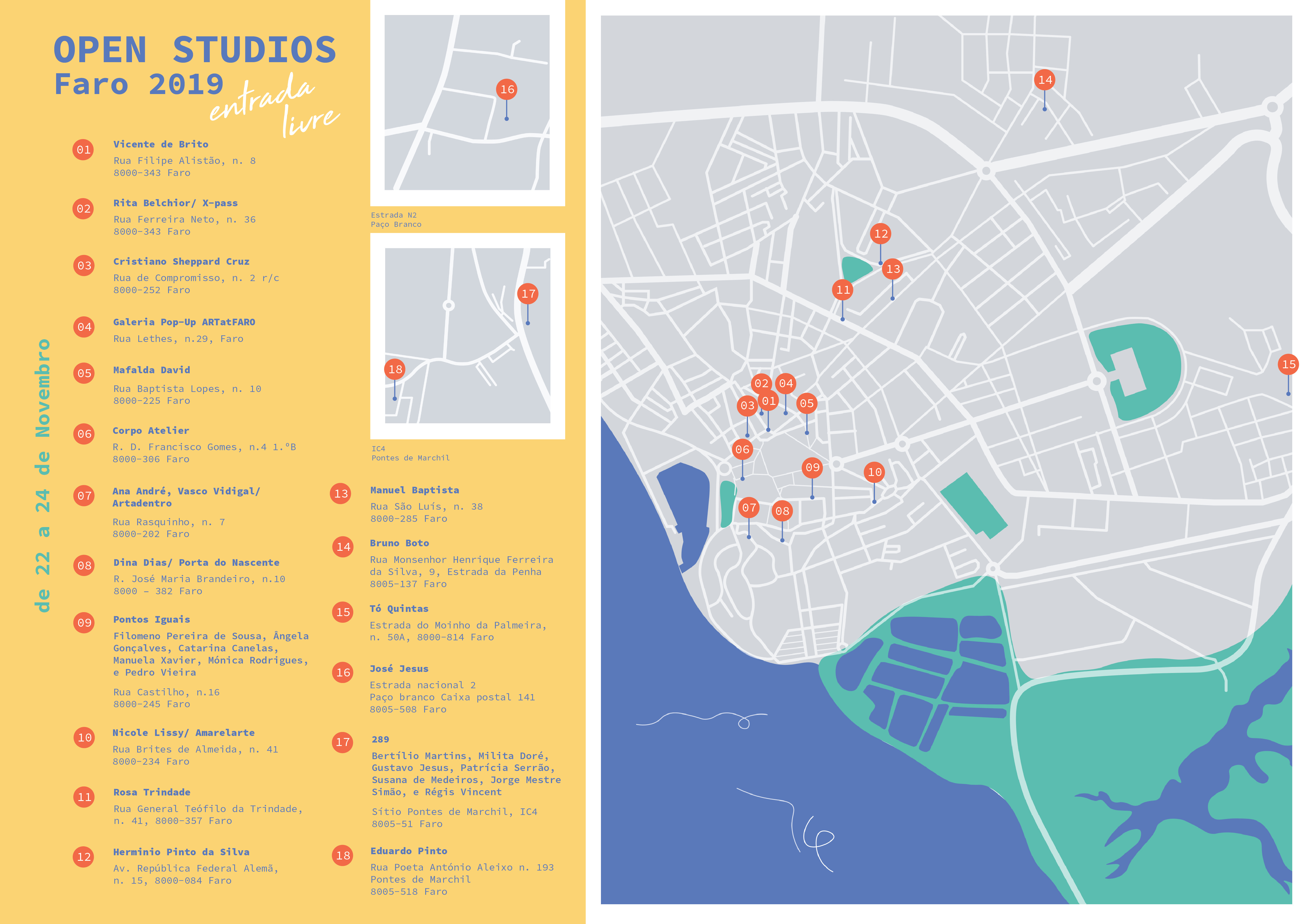 Os estúdios estarão abertos ao público durante sábado e domingo, das 11h às 17h e podem visitá-los sem marcação prévia. A morada de cada estúdio está no programa em anexo, consultem o mapa, ou insiram no google maps para encontrarem os estúdios.