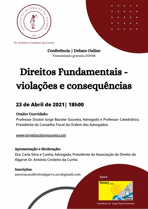 Esta conferência é organizada pela Associação de Direito do Algarve Dr. António Cordeiro da Cunha, com o apoio do Rotary Club de Albufeira, com início às 18 horas, e que se insere num ciclo conjunto de conferências iniciado em 9 de Abril.