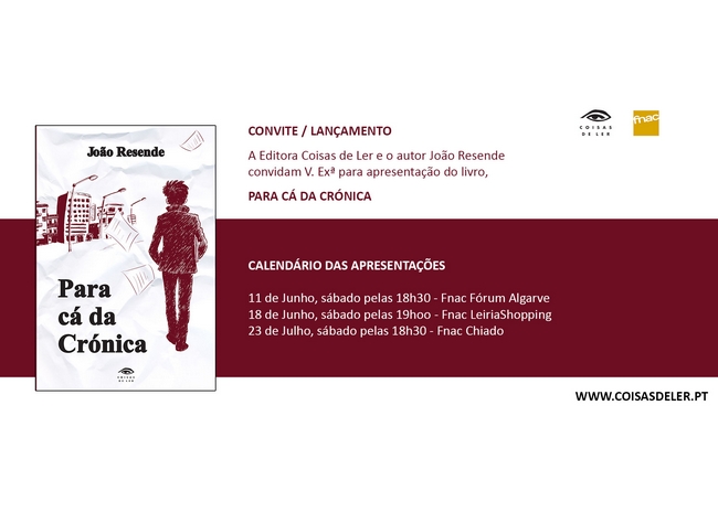 ... faremos um encontro para falar sobre o livro e literatura, com sessão de autógrafos também, antecedido por uma leitura teatralizada de algumas das crónicas pelo ator Mário Spencer.