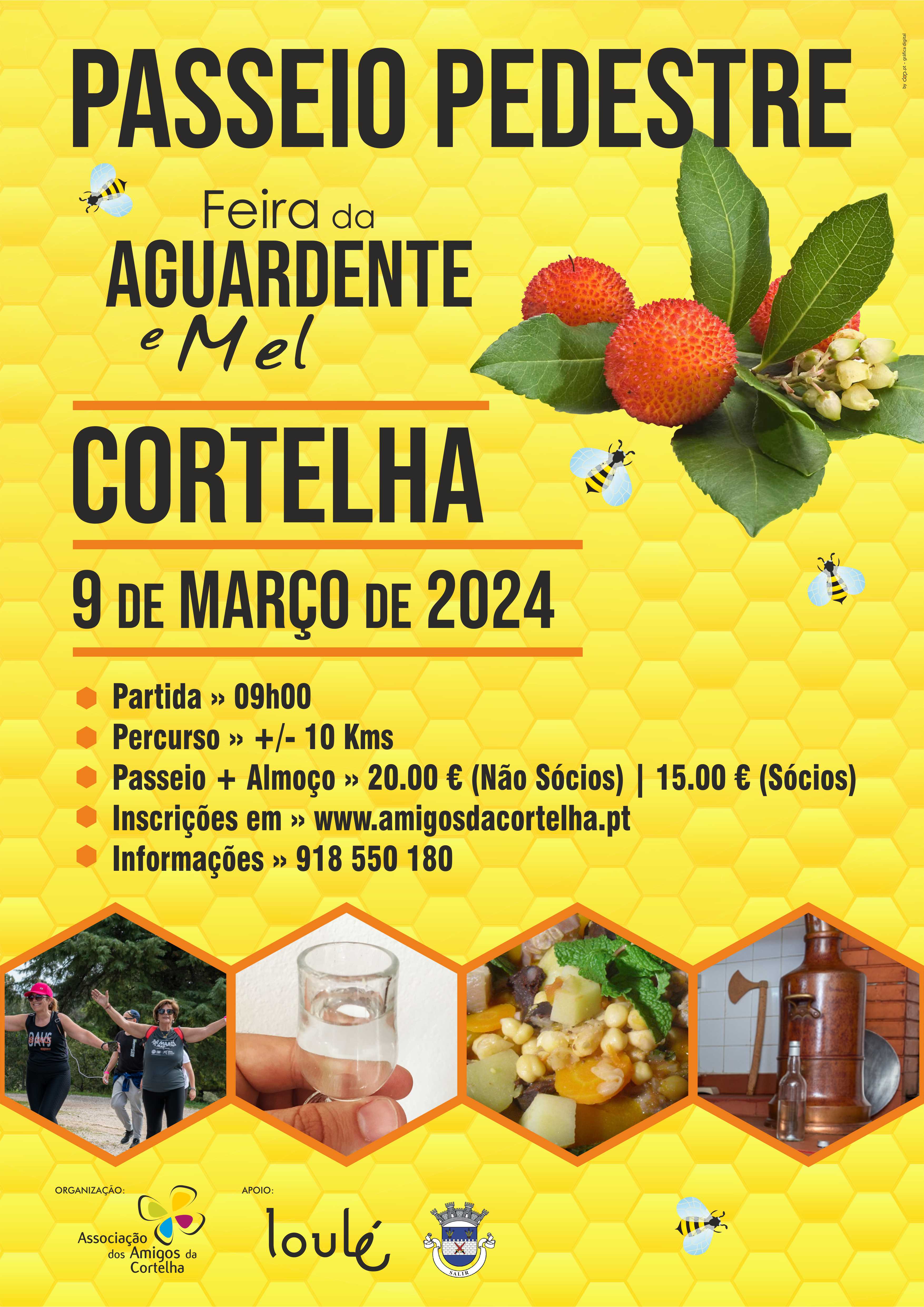 Como o objetivo de dar a conhecer este produto e outros tesouros da Serra do Caldeirão que a Cortelha irá acolher no próximo dia 9 de Março, a Feira da Aguardente e Mel da Serra do Caldeirão e integrado neste certame irá se realizar um Passeio Pedestre que terá como atrativo a visita a algumas destilarias de aguardente de medronho.
