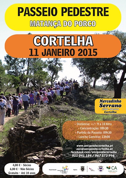 Com o objectivo de proporcionar um domingo diferente a Associação dos Amigos da Cortelha tem todo o prazer em organizar mais um grande Passeio Pedestre, desta feita com o tema principal a ser a tradicional “Matança de Porco”.