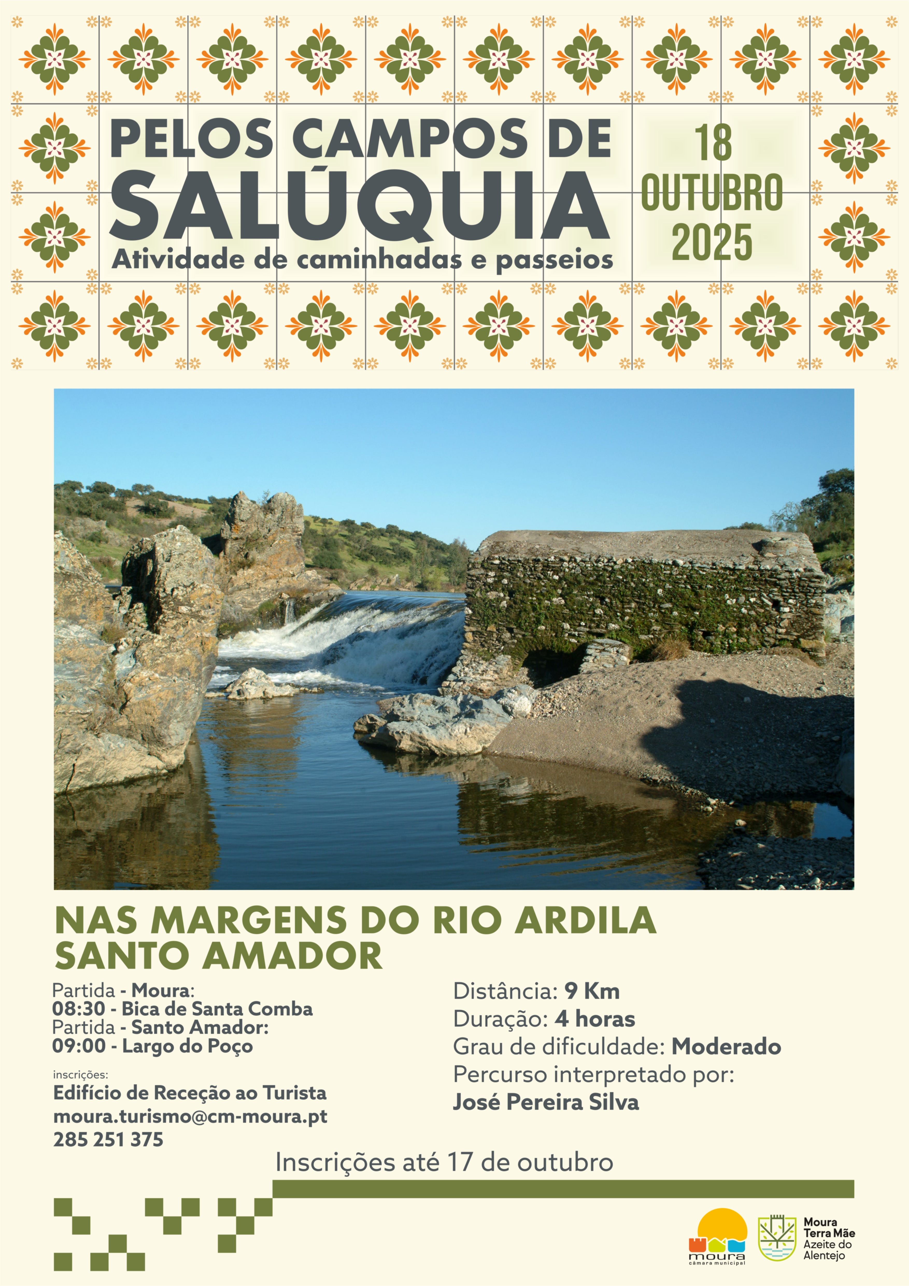 A participação na atividade é gratuita, mas sujeita a inscrição, que deve ser realizada até 17 de outubro para os seguintes contactos: moura.turismo@cm-moura.pt | 285 251 375.