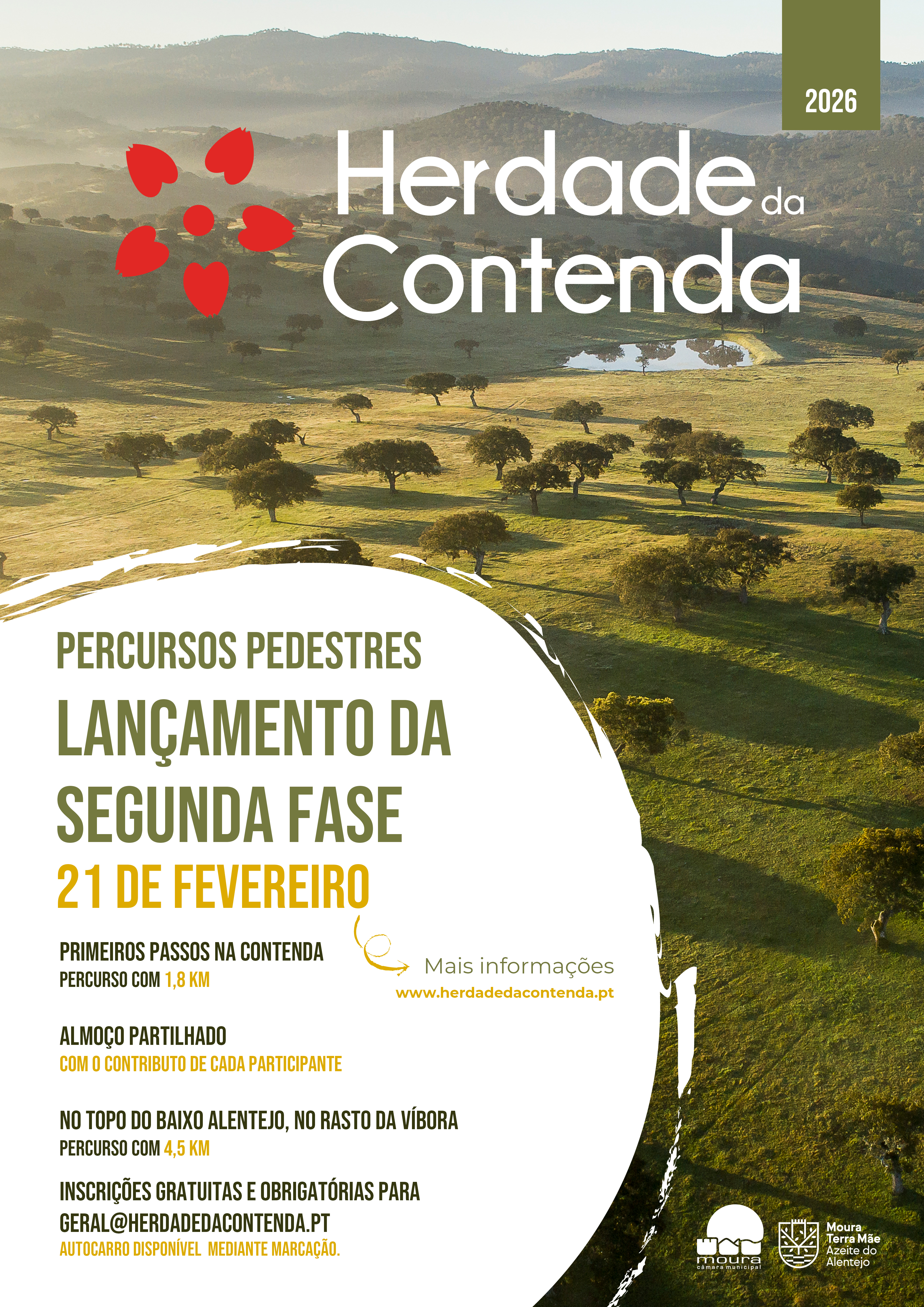 Ao longo deste dia será apresentado o plano anual de percursos pedestres para 2026, que integra um total de 14 iniciativas a realizar ao longo do ano na Herdade da Contenda, propriedade da Câmara Municipal de Moura.