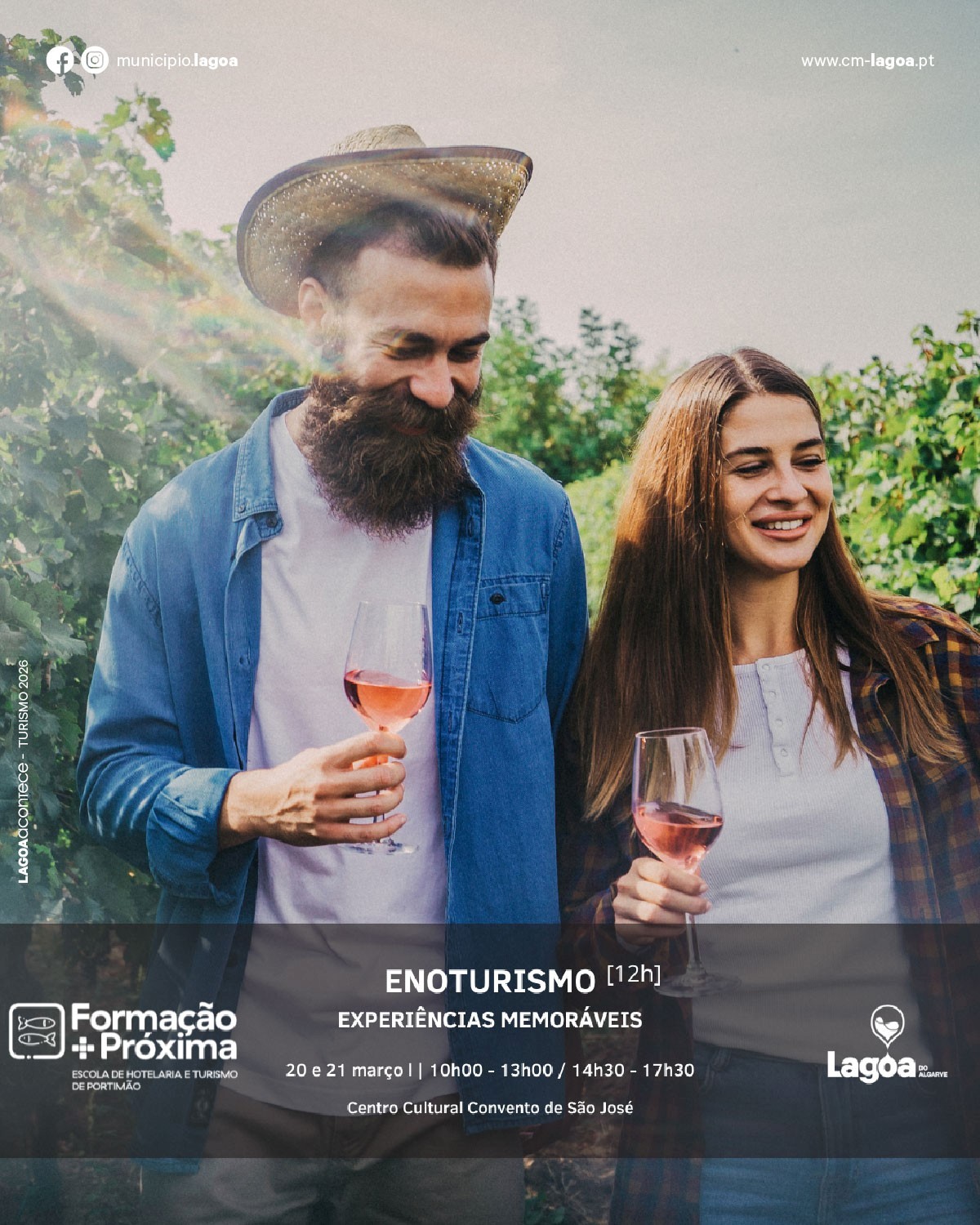 O Município de Lagoa, em cooperação com o projeto Formação + Próxima, dinamizado pela Escola de Hotelaria e Turismo de Portimão, promove a formação Enoturismo: Experiências Memoráveis.