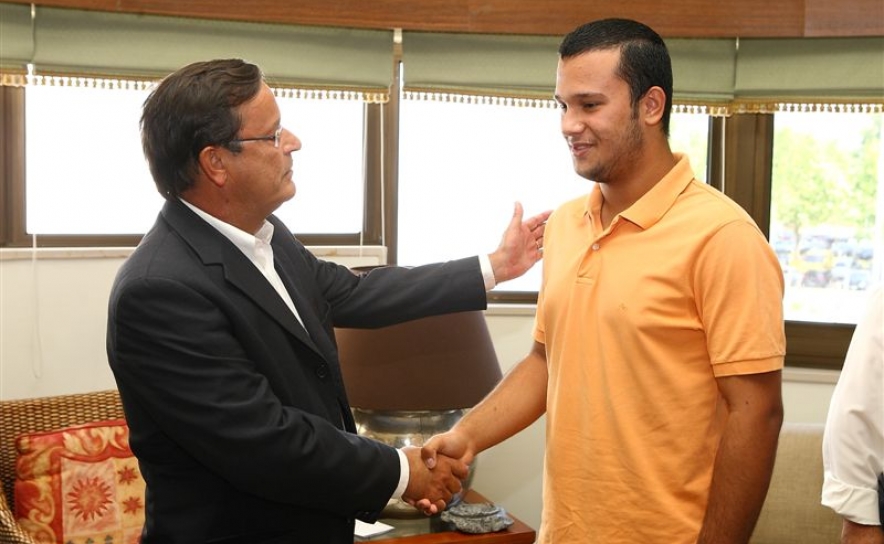 O presidente da Câmara Municipal de Albufeira, Carlos Silva e Sousa, recebeu ontem, no seu gabinete, David Andrade, o aluno do 10º ano da Escola Secundária de Albufeira, que conquistou a medalha de ouro nas Olimpíadas de Matemática da Comunidade de Países de Língua Portuguesa (CPLP), iniciativa que esteve a decorrer em Luanda, de 14 a 19 de julho.