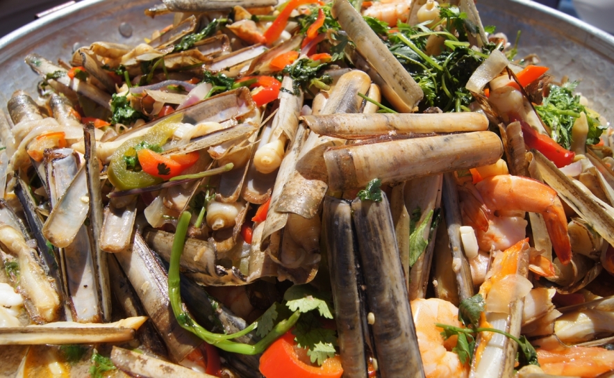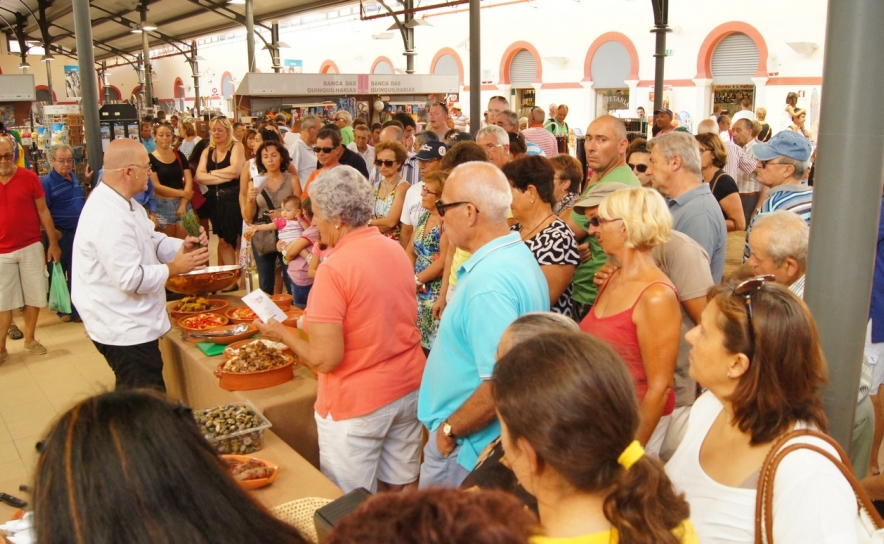 A paragem seguinte foi os Mercados de Olhão. Quem passou por este emblemático local, no dia 15 de agosto, pôde assistir à confeção de uma cataplana de lingueirão e camarão acompanhada de xarém.