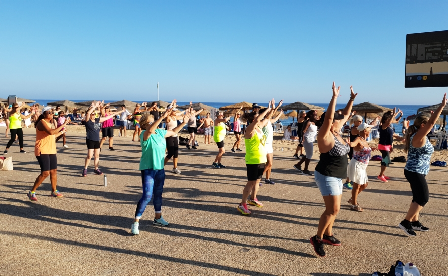 A Praça do Mar, em Quarteira, acolheu ontem, 30 de julho, ao fim da tarde, o 8.º Zumba Sunset24 com a instrutora Bela Pereira