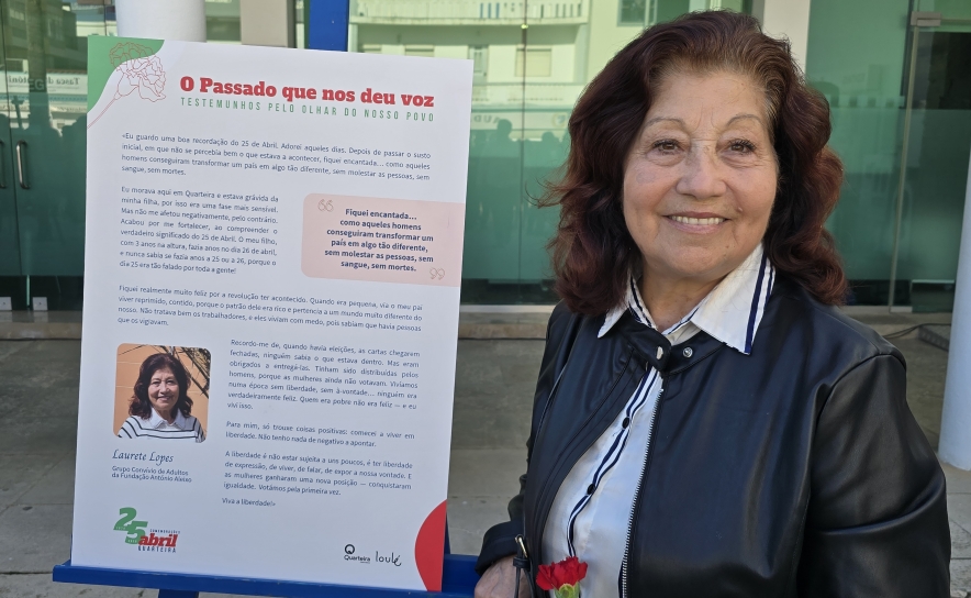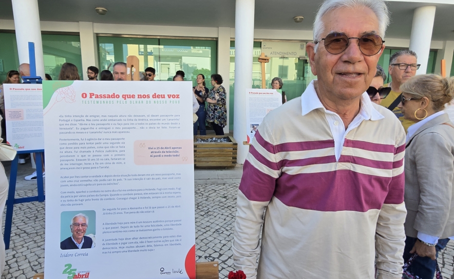 Nesta mesma manhã, foi inaugurada no Largo do Centro Autárquico a exposição “O Passado que nos deu voz” , composta por testemunhos de cidadãos da freguesia que viveram o 25 de Abril de 1974. São memórias reais, de gente anónima que sentiu na pele a mudança: o medo, a esperança, a alegria contida e, depois, a explosão de liberdade. Depoimentos que nos recordam que Abril não foi um facto distante: foi vivido por pais, avós, vizinhos, e que os seus ecos ainda hoje nos definem como povo. Uma das histórias mais comoventes é a de uma senhora que, em Abril de 1974, tinha 17 anos e vivia num lar de estudantes em Lisboa. Lembra-se de acordar com o barulho dos tanques e de horas depois, ver as pessoas na rua a distribuir cravos. “Nunca mais esqueci a sensação de que algo imenso estava a acontecer”, confidenciou. Histórias como esta, anónimas, mas poderosas, são o verdadeiro tecido da memória coletiva. Posteriormente, entre 27 de abril e 15 de maio, a mostra estará patente em vários edifícios da Junta de Freguesia de Quarteira (Centro Autárquico, Edifício Sociocultural, entrada da Galeria da Praça do Mar e Praça da Fruta), podendo ser visitada durante o horário de funcionamento dos respetivos espaços. Uma oportunidade para que todos, especialmente os mais jovens, possam conhecer e refletir sobre o passado que lhes deu voz — e que, por isso, têm a responsabilidade de não deixar morrer.