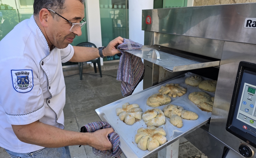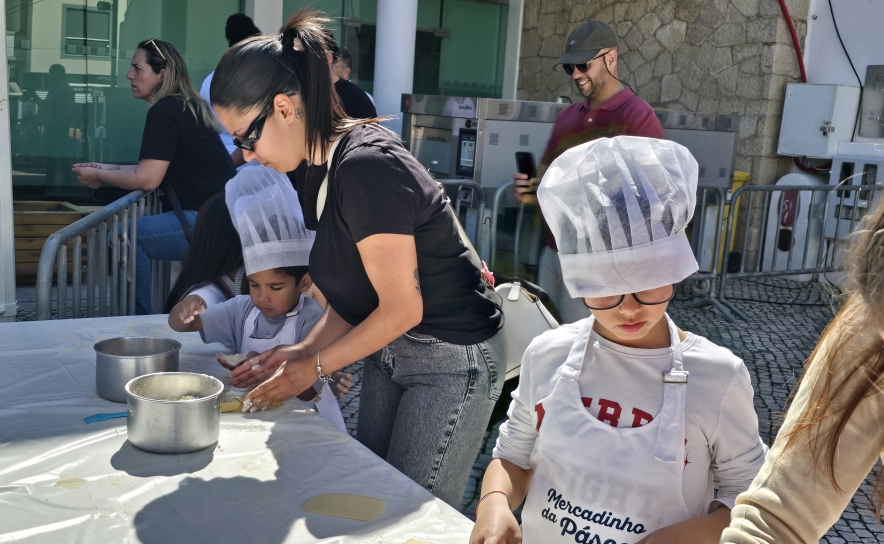 A Rua Vasco da Gama, em Quarteira, transformou-se no dia 3 de abril, numa autêntica oficina de sabores e afetos. Integrado no programa da 10.ª edição do Mercadinho da Páscoa, teve lugar o Atelier do Folar para os mais novos, com o patrocínio da Pastelaria Duo Doce. Durante a tarde, dezenas de crianças colocaram as mãos na massa — literalmente — e aprenderam, sob o olhar atento e orgulhoso dos pais, os segredos de uma das tradições mais doces da quadra pascal. A iniciativa, que contou com a participação entusiástica de famílias inteiras, proporcionou momentos únicos de convívio e aprendizagem. Enquanto os mais pequenos amassavam, modelavam e decoravam os seus folares, os pais acompanhavam de perto, ajudando, fotografando e, no final, levando para casa as obras-primas confecionadas pelos próprios filhos. Mais do que uma simples atividade lúdica, o atelier revelou-se um espaço de partilha entre gerações, onde o saber tradicional se transmitiu naturalmente, docemente, entre risos e farinha espalhada pela mesa.