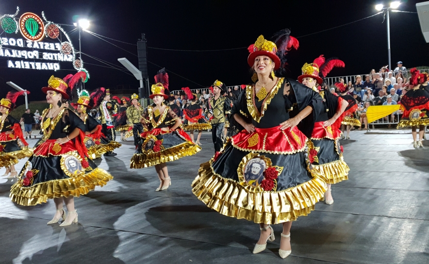 Este ano foram sete as marchas participantes, 6 da terra e 1 convidada em cada desfile. A Onda Jovem regressou ao desfile e atuou ao lado de alguns grupos “clássicos”, designadamente As Florinhas de Quarteira, Rua da Cabine, Poeta Pardal, Rua Vasco da Gama e Rua do Outeiro. Bairrismo, amor à terra e orgulho em mostrar o trabalho de muitos meses são as bandeiras das centenas de figurantes que interpretam temas ligados à faina do mar, à Quarteira de outros tempos e aos santos padroeiros destas festividades. Entre arcos e balões, os trajes, as coreografias e as músicas trazem uma atmosfera única a esta festa que atrai milhares de espetadores ao “santódromo” quarteirense.