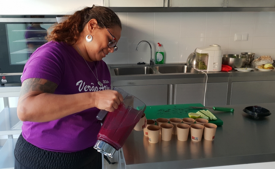 Neste workshop, Erika de Sousa elaborou três sumos, com recurso a uma liquidificadora, designadamente: