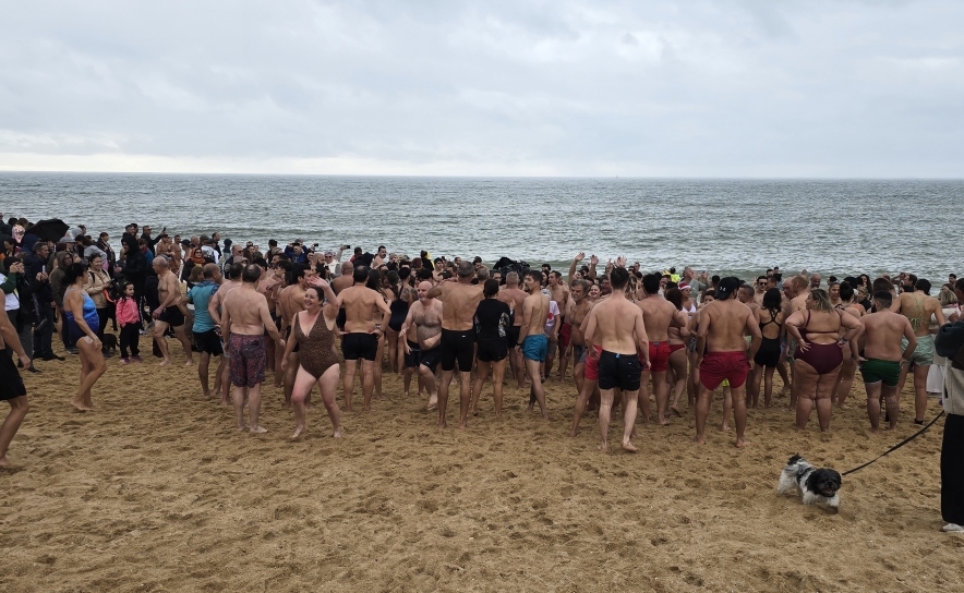 A concentração na Praça do Mar foi apenas o ponto de partida para um momento que transcende o mergulho no mar, transformando-se numa celebração massiva da vida e do espírito coletivo. A iniciativa, que cresce em adesão e significado a cada edição, voltou a juntar centenas de banhistas destemidos, entre os quais o presidente da Câmara Municipal de Loulé, Telmo Pinto, e o presidente da Junta de Freguesia de Quarteira, João Romão, rodeados por uma impressionante moldura humana de milhares de pessoas que se estendeu ao longo de toda a Marginal.