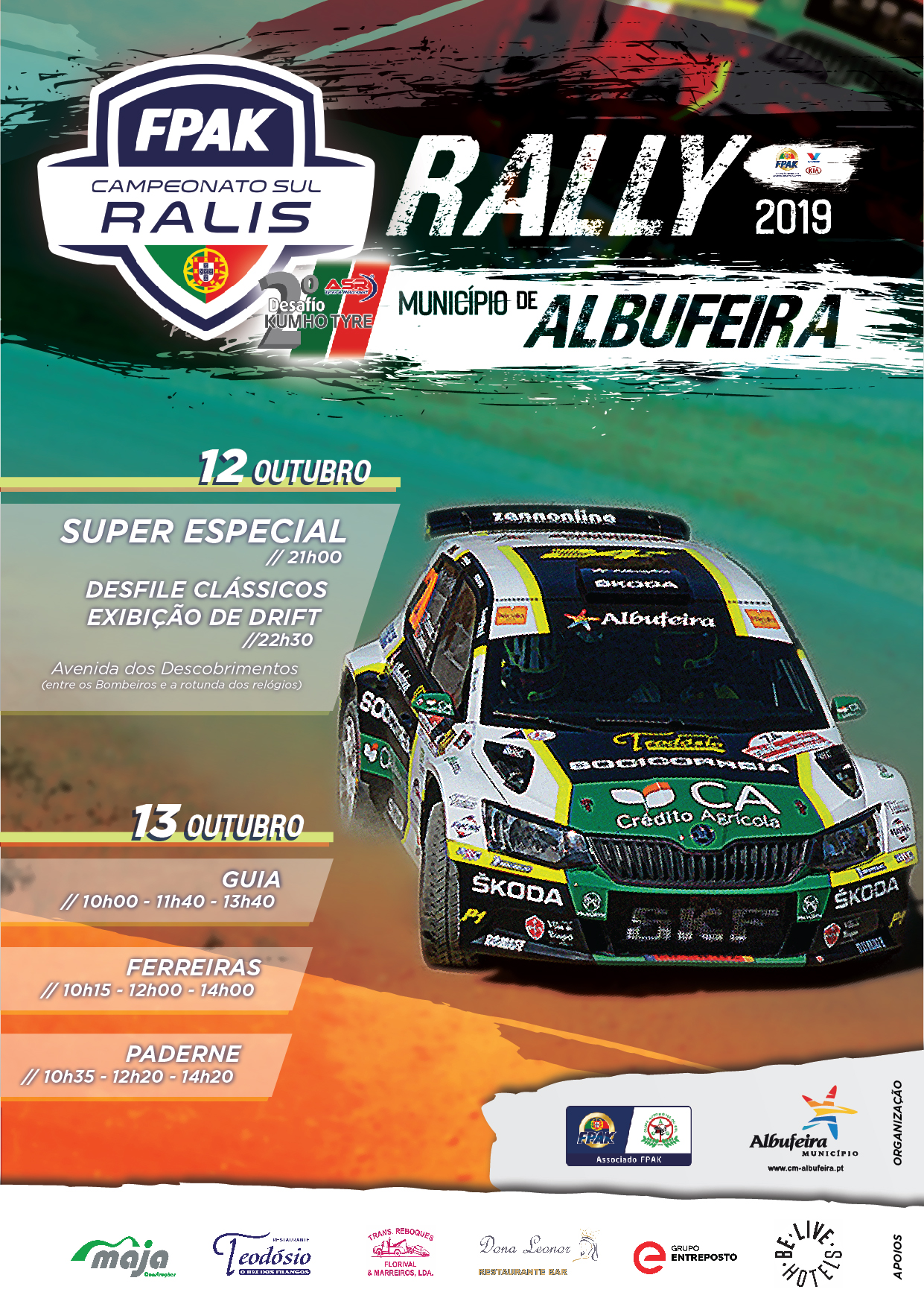 Organizado pelo Clube Automóvel do Sul com o apoio da Câmara Municipal, o Rally Município de Albufeira é a sexta prova a contar para o Campeonato Sul de Ralis, que este ano, inclui também o 2o desafio Kumbo Tyre.