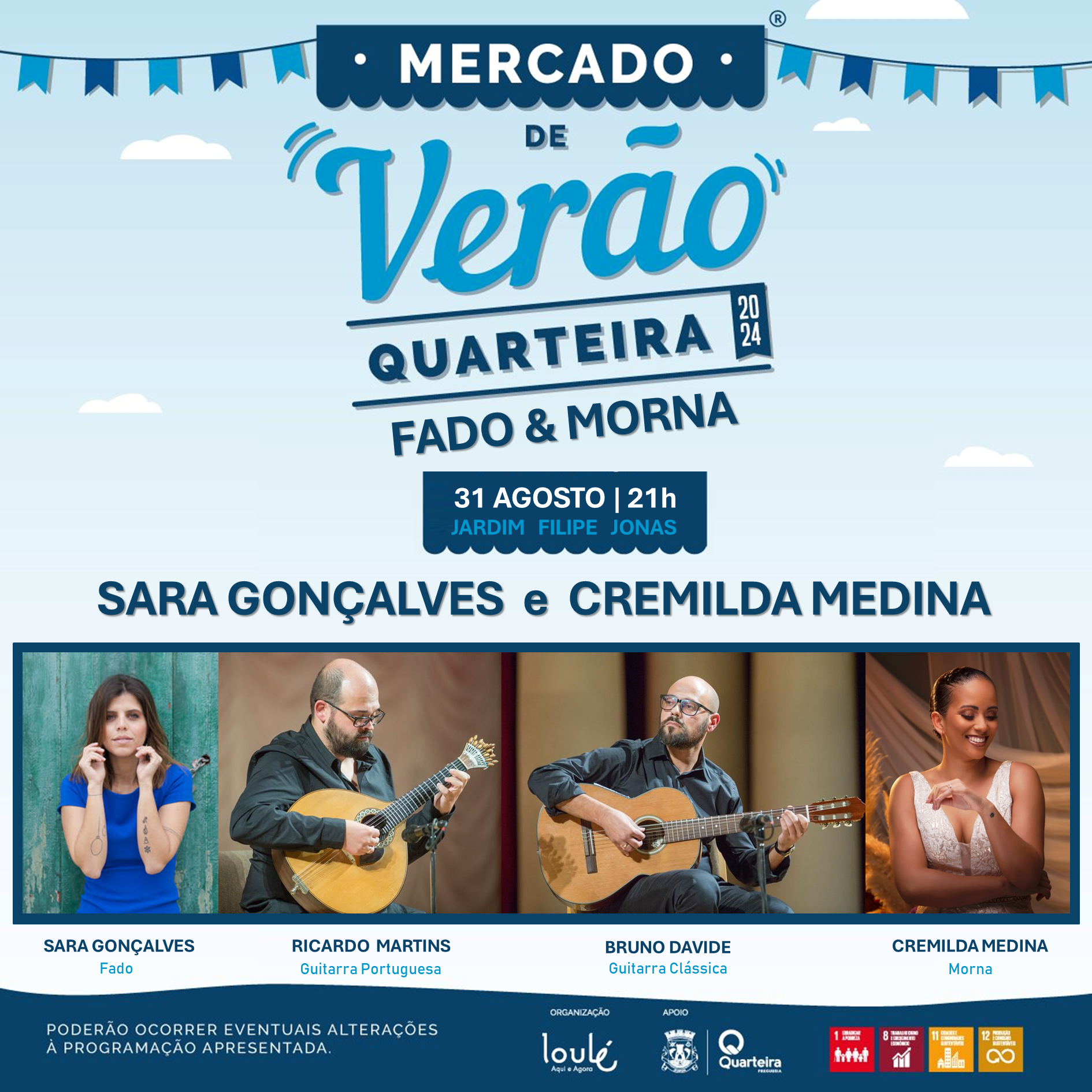 Sara Gonçalves com uma carreira consolidada no mundo do Fado, dona de uma voz expressiva e uma presença marcante em palco e Cremilda Medina considerada a Voz da Morna da nova geração de cantores Cabo-verdianos, com uma voz doce e um estilo e presença inconfundíveis, juntam-se a Ricardo J. Martins na Guitarra Portuguesa e a Bruno Davide na Guitarra Clássica para levarem a Quarteira as sonoridades que unem Portugal e Cabo Verde.