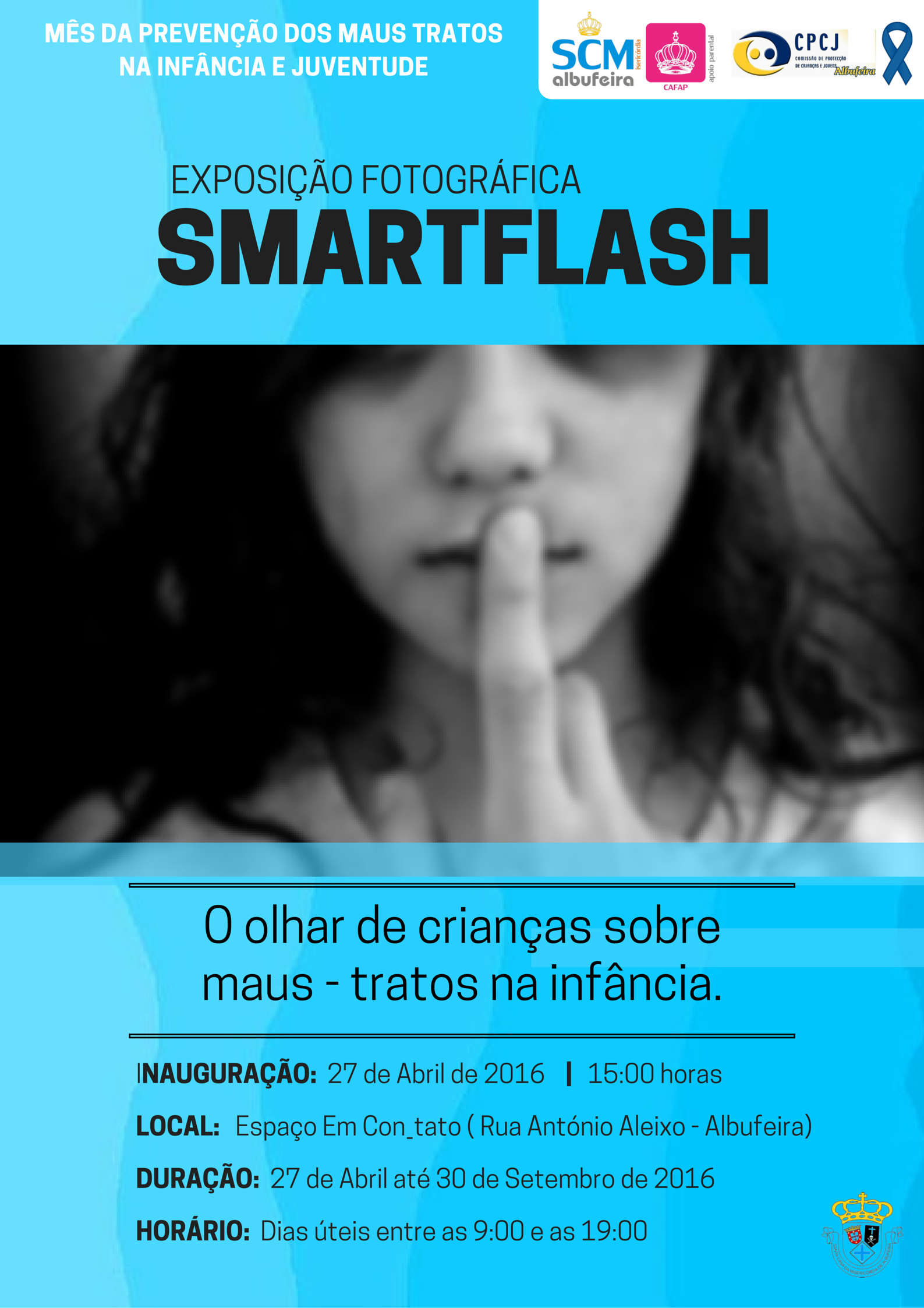 Na passada quarta – feira, a Misericórdia de Albufeira e a CPCJ anunciaram as duas vencedoras do seu concurso de fotografia “SMARTFLASH”. As fotografias foram submetidas a concurso por crianças residentes e estudantes no concelho de Albufeira. No âmbito do Mês da Prevenção dos Maus Tratos na Infância e Juventude, a iniciativa visou fomentar a participação e criatividade das crianças e jovens em torno dos seus direitos.