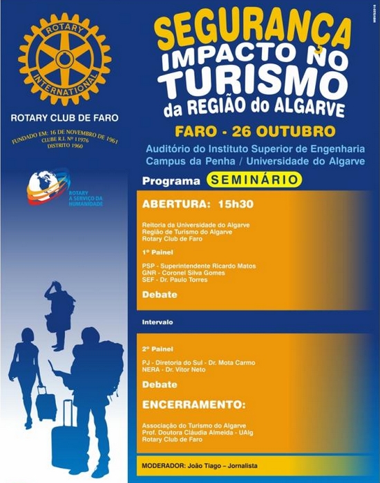 Promovido pelo Rotary Club de Faro, este seminário pretende debater as implicações da segurança, em diferentes dimensões, para o turismo e, consequentemente, para a economia da região.