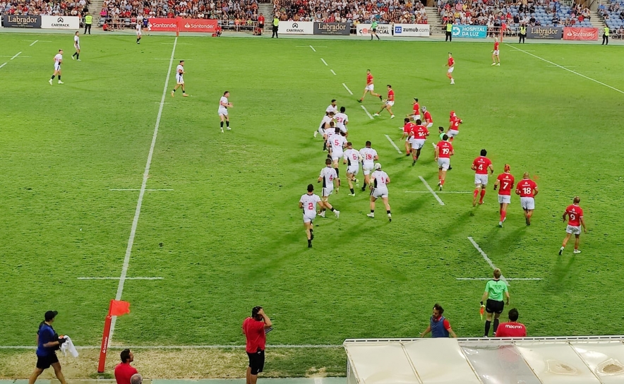 Os Estados Unidos passaram os primeiros 10 minutos ‘instalados’ na área de 22 metros portuguesa, mas não conseguiram mais do que três pontos, numa penalidade de Luke Carty (09), e Portugal respondeu com um ensaio de Joris Moura (16), transformado por Samuel Marques.