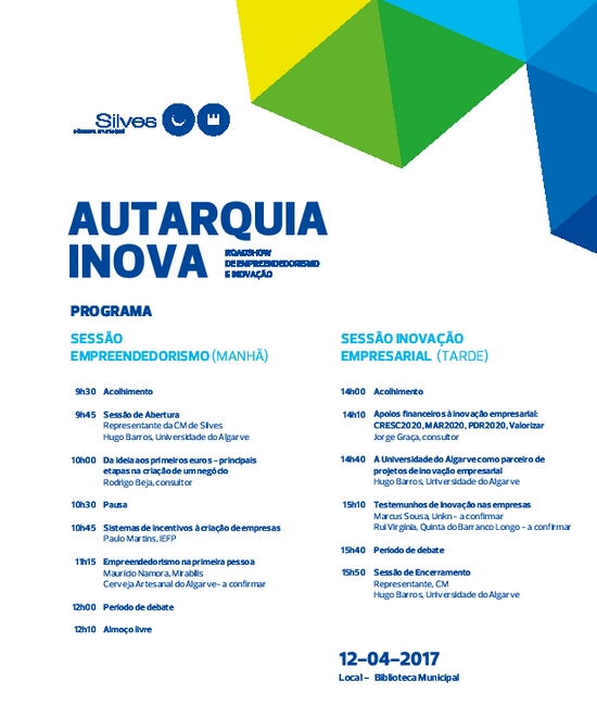 Este evento é organizado em colaboração com o NERA - Associação Empresarial da Região do Algarve, a AMAL – Comunidade Intermunicipal do Algarve e o IEFP - Instituto de Emprego e Formação Profissional e é financiado pelo Sistema de Apoio a Ações Coletivas do Programa Operacional CRESC Algarve 2020, através dos projetos CRIA START + Projeto de Fomento e Apoio ao Empreendedorismo e à Criação de Novas Empresas Inovadoras e TT 2.0. - Projeto de Aceleração dos Processos de Transferência de Tecnologia e Conhecimento para o Mercado.