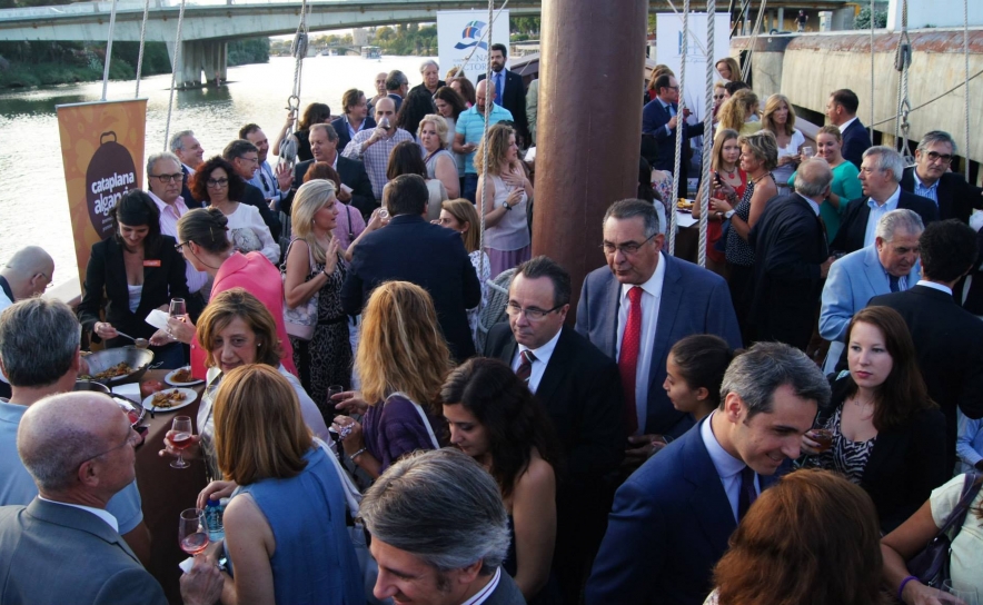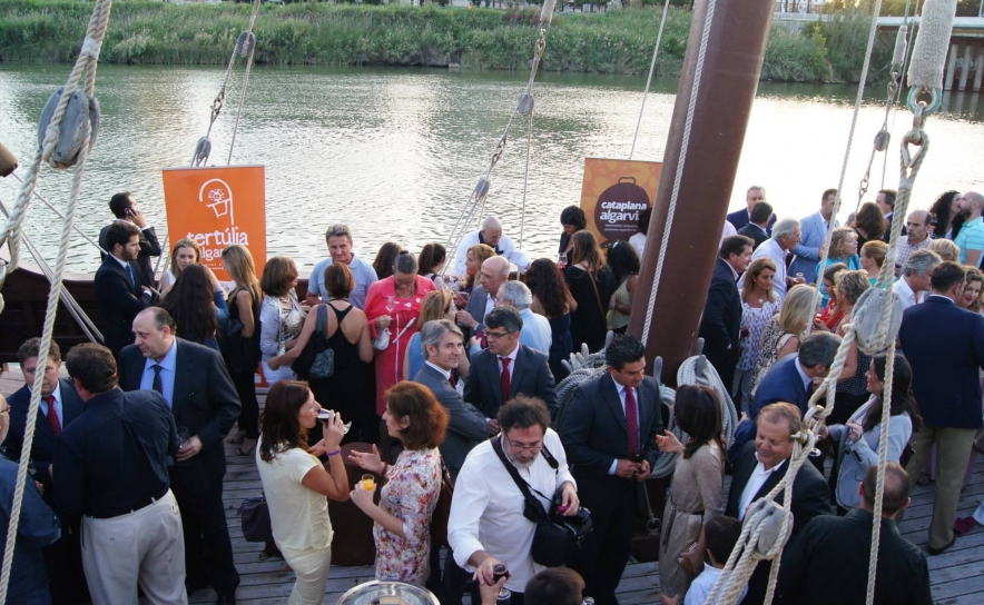 O modelo da iniciativa promocional foi inovador para os convidados que nunca tinham pisado uma embarcação semelhante às que se utilizaram na epopeia marítima dos Descobrimentos portugueses. Com a caravela decorada a preceito, depois de ter navegado do Algarve até ao molhe das Delícias em Sevilha, onde fundeou, a ação abriu mostrando os bons paladares da cozinha típica algarvia numa cataplana confecionada pelo chef Augusto Lima, do restaurante Tertúlia Algarvia, em Faro. Para acompanhar, serviram-se brancos e tintos da região, numa altura em que já muito se fala sobre a nova Rota dos Vinhos do Algarve.