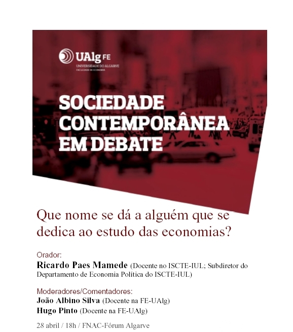 Esta sessão terá, ainda, a participação do Professores Doutores João Albino Silva e Hugo Pinto, ambos docentes da Faculdade de Economia da Universidade do Algarve e membros do CIEO.