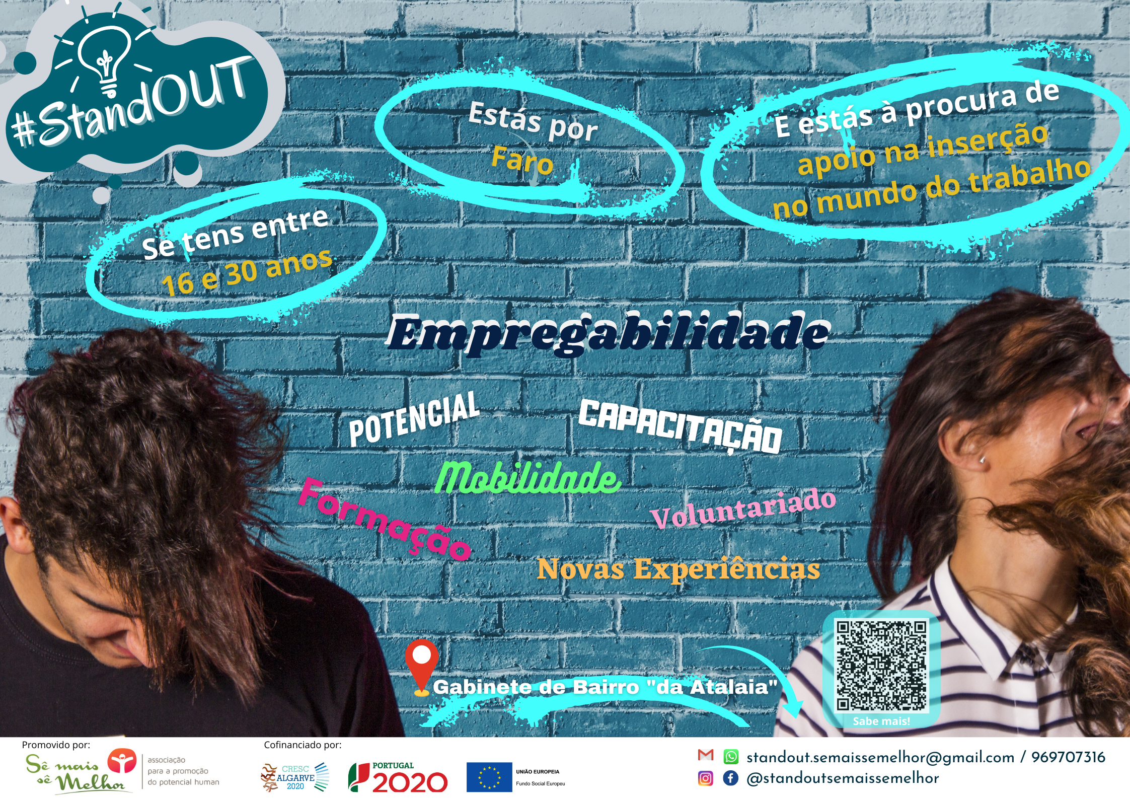 O #StandOut - Projeto para a Promoção do Potencial Jovem pretende intervir na empregabilidade e integração profissional dos/as jovens, entre os 16 e os 30 anos, que estejam em situação (ou em risco) de exclusão social no Concelho de Faro.