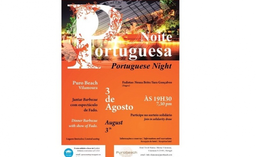 No dia 3 de Agosto o jantar solidário realiza-se no Purobeach, no Tivoli Marina Vilamoura, contando com a actuação das fadistas de renome Sara Gonçalves e Neusa Brito, acompanhadas por Filipe Baptista na guitarra portuguesa e por Paulo Feiteira na viola de fado. A 9 de Agosto, o anfitrião será o The Residences at Victoria, estando a animação a cargo de Nádia Catarro, Ricardo Nené e Renato Nené.
