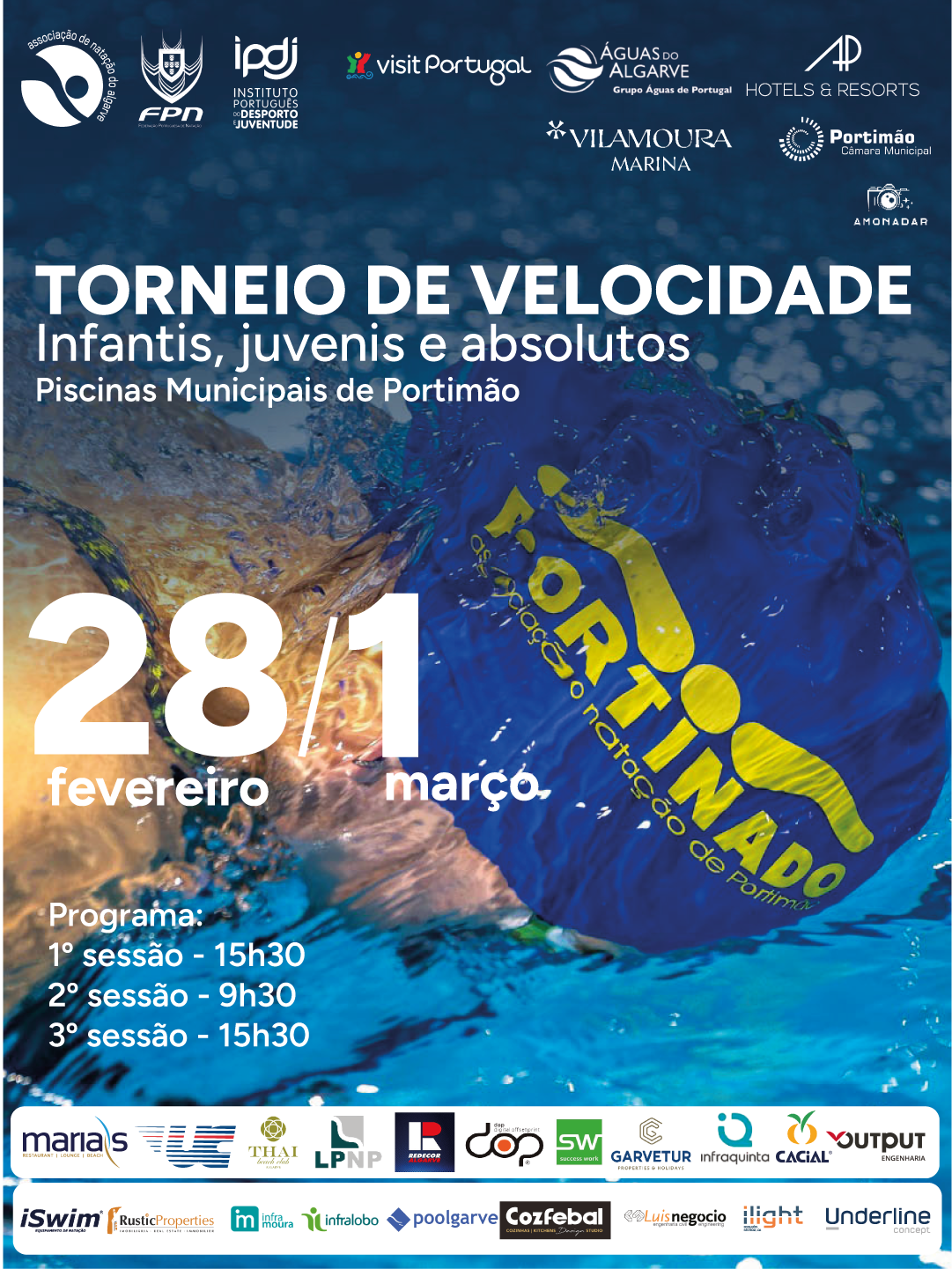 As Piscinas Municipais de Portimão recebem, nos dias 28 de fevereiro e 1 de março, o Torneio de Velocidade de Infantis, Juvenis e Absolutos, uma das competições mais relevantes do calendário regional de natação, organizada pela Associação de Natação do Algarve.