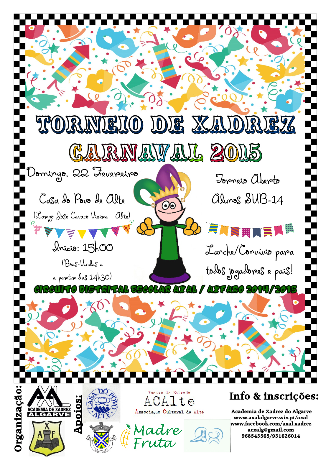 Esta será a 3ª prova a contar para Circuito Distrital Escolar AXAL/AXFARO 2014/15, depois do Torneio de Abertura do Ano Letivo e do Torneio de Natal da AXAL 2014.
