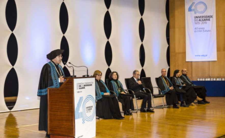 Na sessão solene do 40º aniversário da Universidade do Algarve, que se realizou no dia 11 de dezembro, às 17h00, no Grande Auditório do Campus de Gambelas, o reitor Paulo Águas relembrou que a UAlg é a única Instituição de Ensino Superior criada pela Assembleia da República, Lei 11/79, publicada a 28 de março. “É uma singularidade que muito nos orgulha”, afirmou, elencando alguns dos momentos mais marcantes da Academia, desde o período de instalação, passando pelo período de grande expansão, até à última década, marcada pela internacionalização.